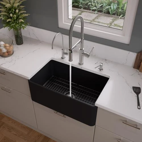 - This 30″ ALFI brand fireclay farm sink is a throwback to a simpler time. Designed to offer the traditional popular look of an apron farm sink with a contemporary twist featuring extra thin walls. Made of the highest quality solid fireclay to ensure it not only looks great but also lasts for a very long time.