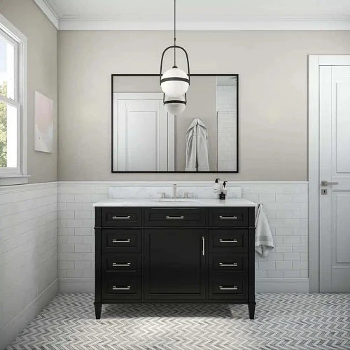 - Inspired by the idyllic scenery of the Hamptons’ beaches and the charming beach homes that dot the shoreline, the Montauk vanity collection showcases an understated silhouette with solid hardwood and engineered wood chamfered legs and framed door fronts. Premium soft-close glides and hinges provide effortless motion, while the dovetailed joints offer seamless joinery. The vanity’s accents and classic lines give it a sophisticated yet casual vibe, making it a perfect addition to any bathroom. With its refined yet elegant aesthetic and versatile design, the Montauk was crafted to complement any range of bathroom styles.