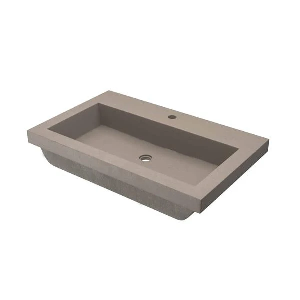 - The clean lines and smooth, matte surface of Trough 3019 radiate modernity, while earthy concrete adds a warm farmhouse aesthetic to any design. This trough sink is Artisan-crafted of NativeStone: an innovative blend of cement and natural jute fiber, resilient enough for heavy-duty tasks with a refreshingly easy cleanup. An improved two-part sealer is proven to prevent staining, scratching and cracking. Now available in a smaller 30 Inch size, the Trough 3019 brings organic beauty to more compact bathroom spaces.